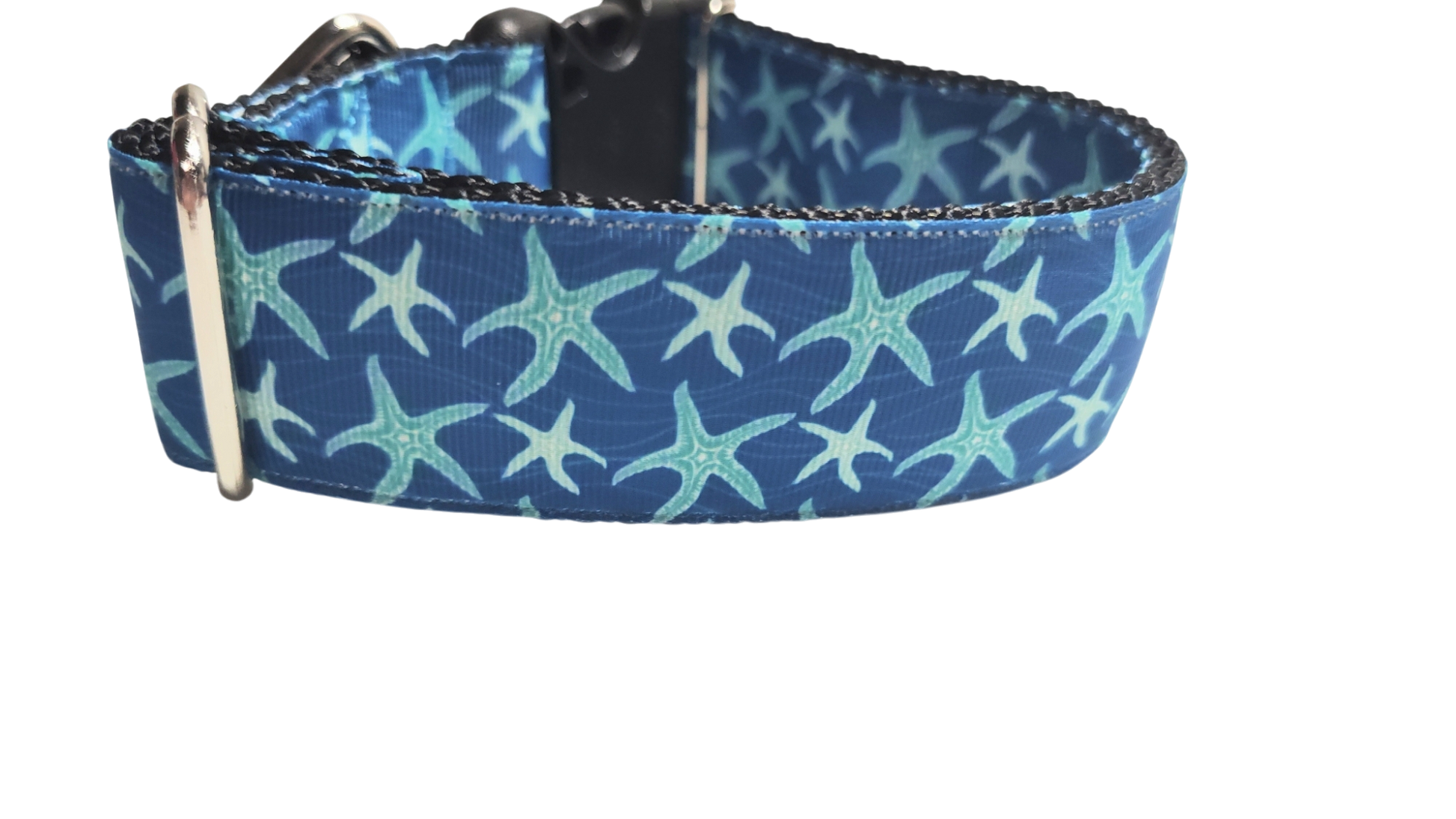 1.5" Wide Blue Starfish Nylon Dog Collar