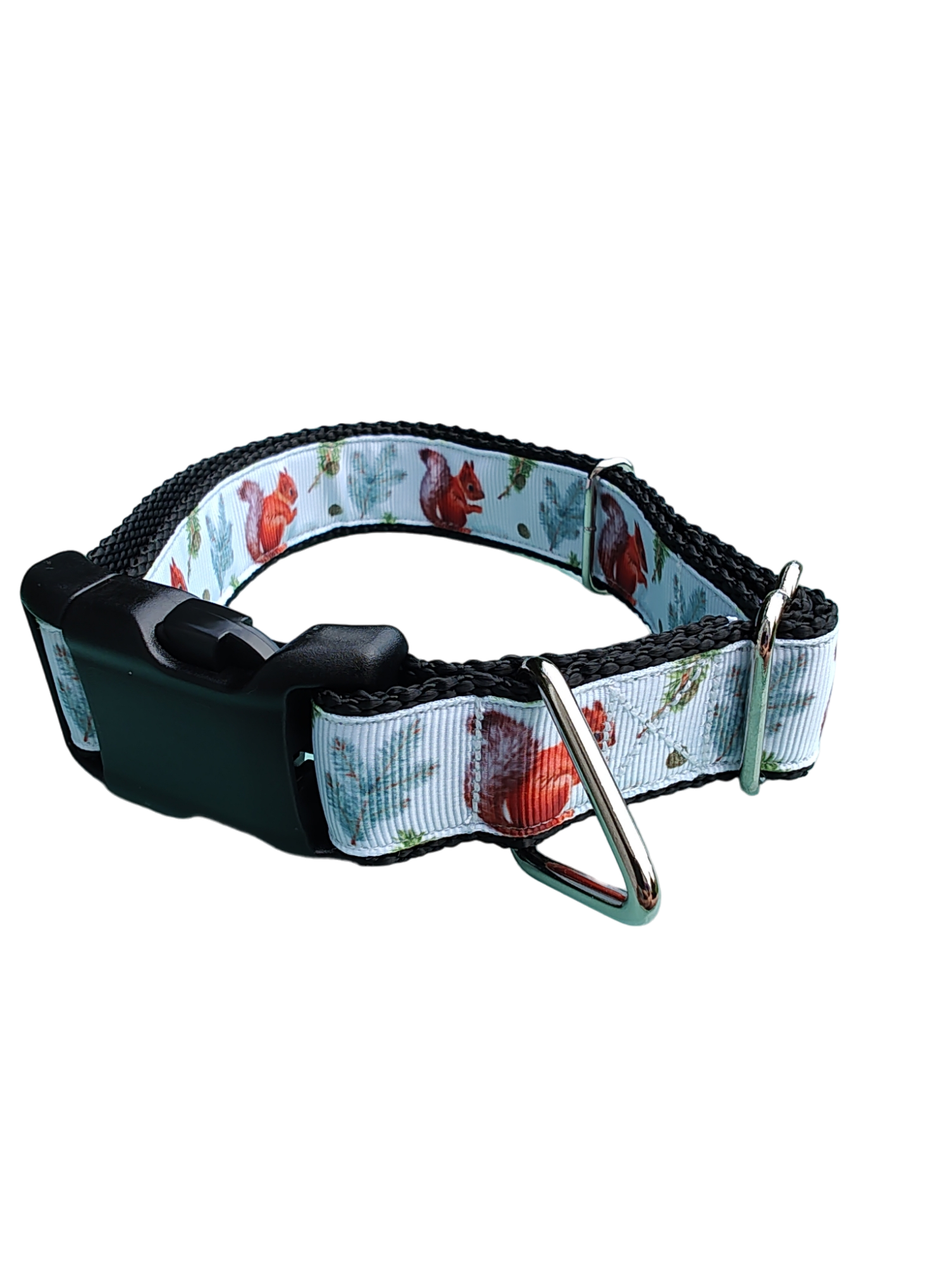 Forest Squirrel dog collar on nylon webbing