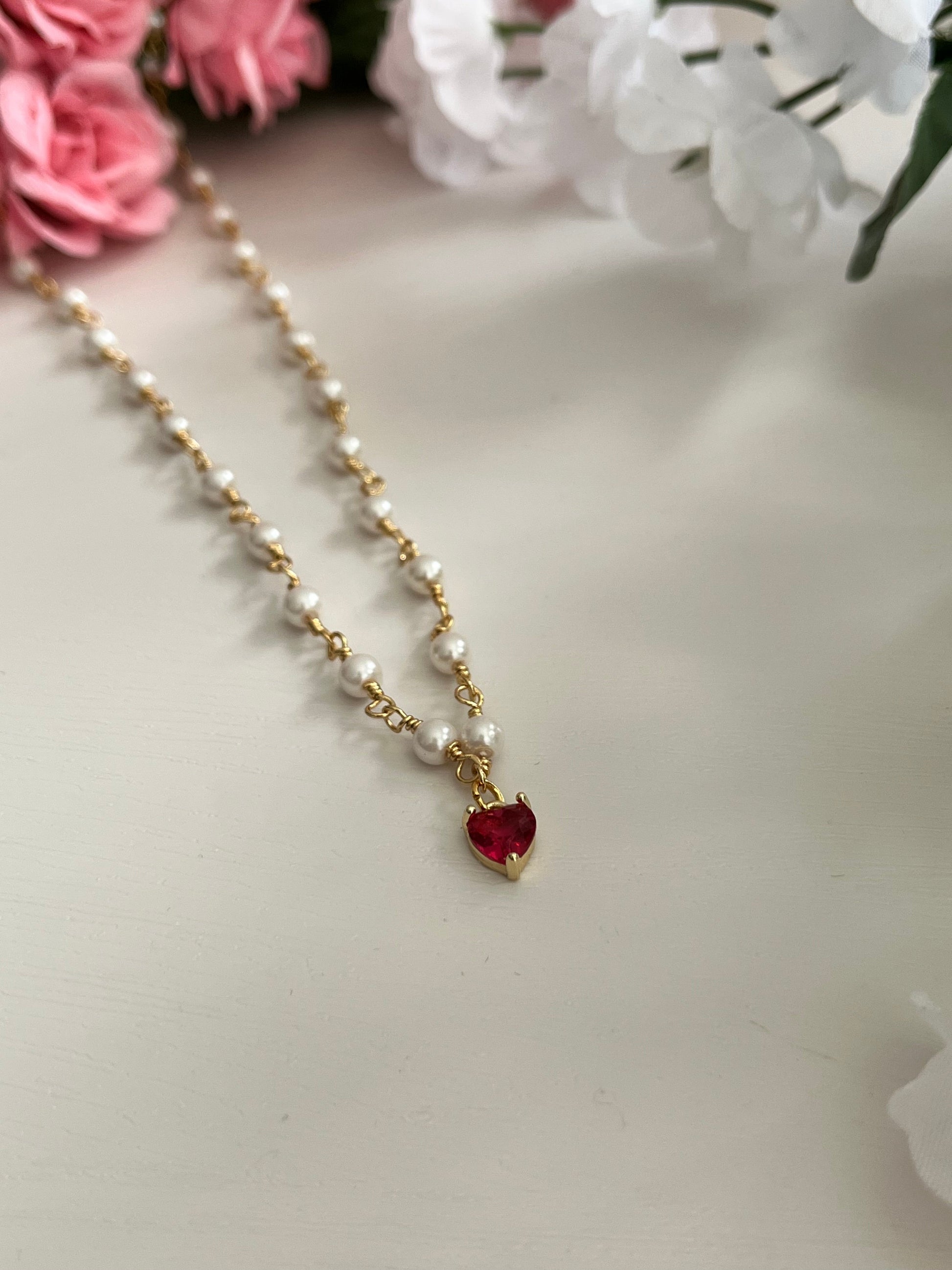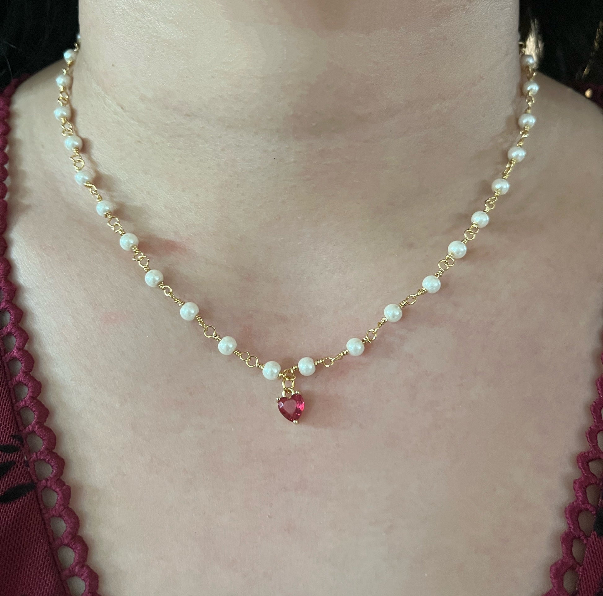 Gold Heart Necklace with Freshwater Pearl – 18K Heart Pendant