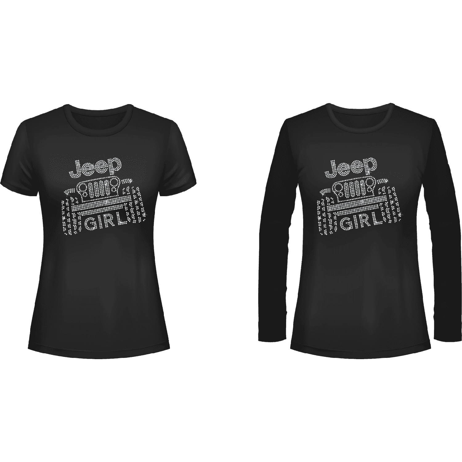 Jeeper Girl Rhinestone Tee Black, Short or Long Sleeve 1