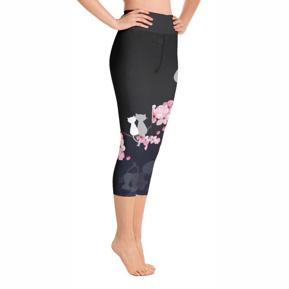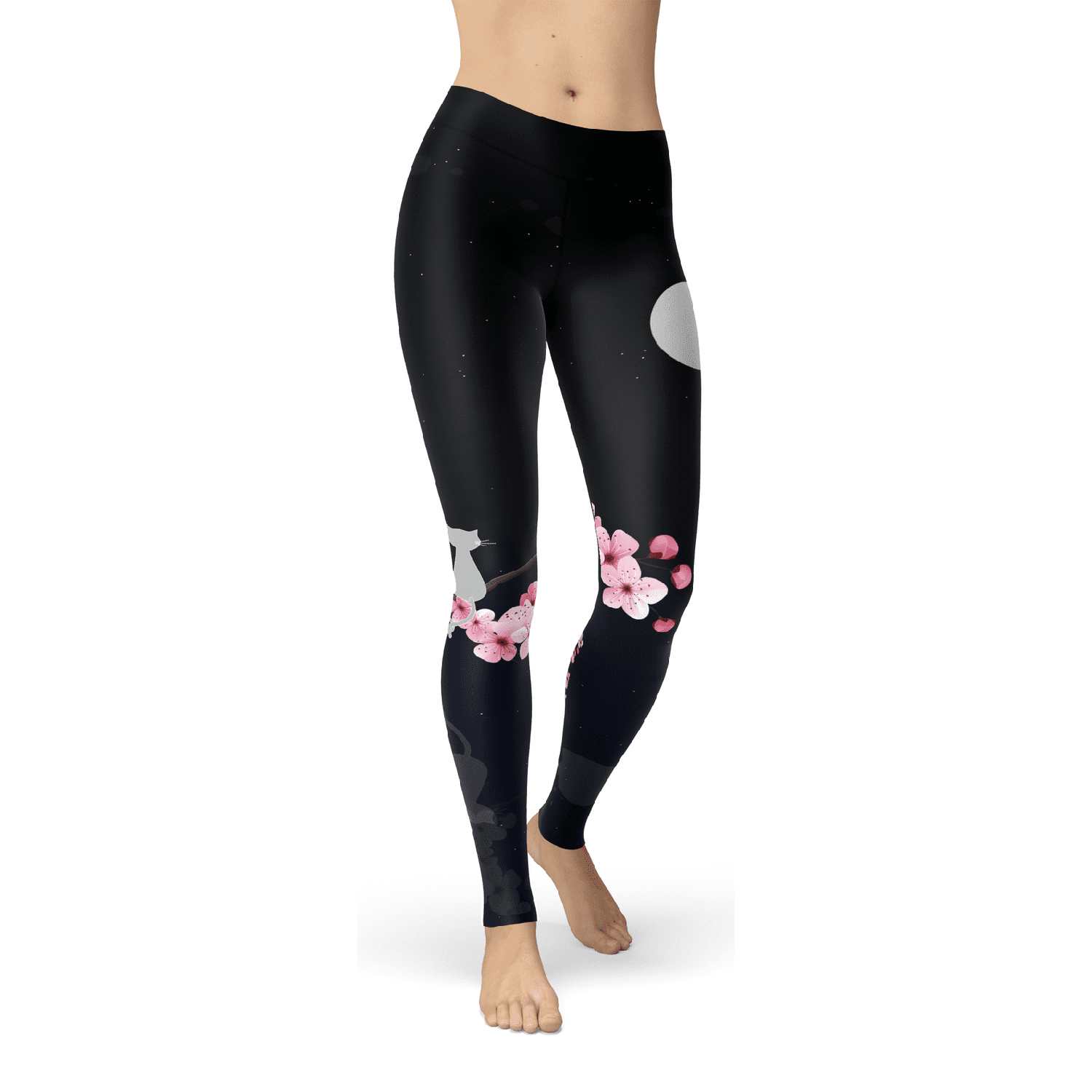 These leggings are perfect for anyone who is cat obsessed. It features a cherry blossum tree under the moon. Two cats sit on the branch over the water with tailsl entwined. These are custom made leggings extremely soft leggings made with 92% polyester and 8% spandex.
