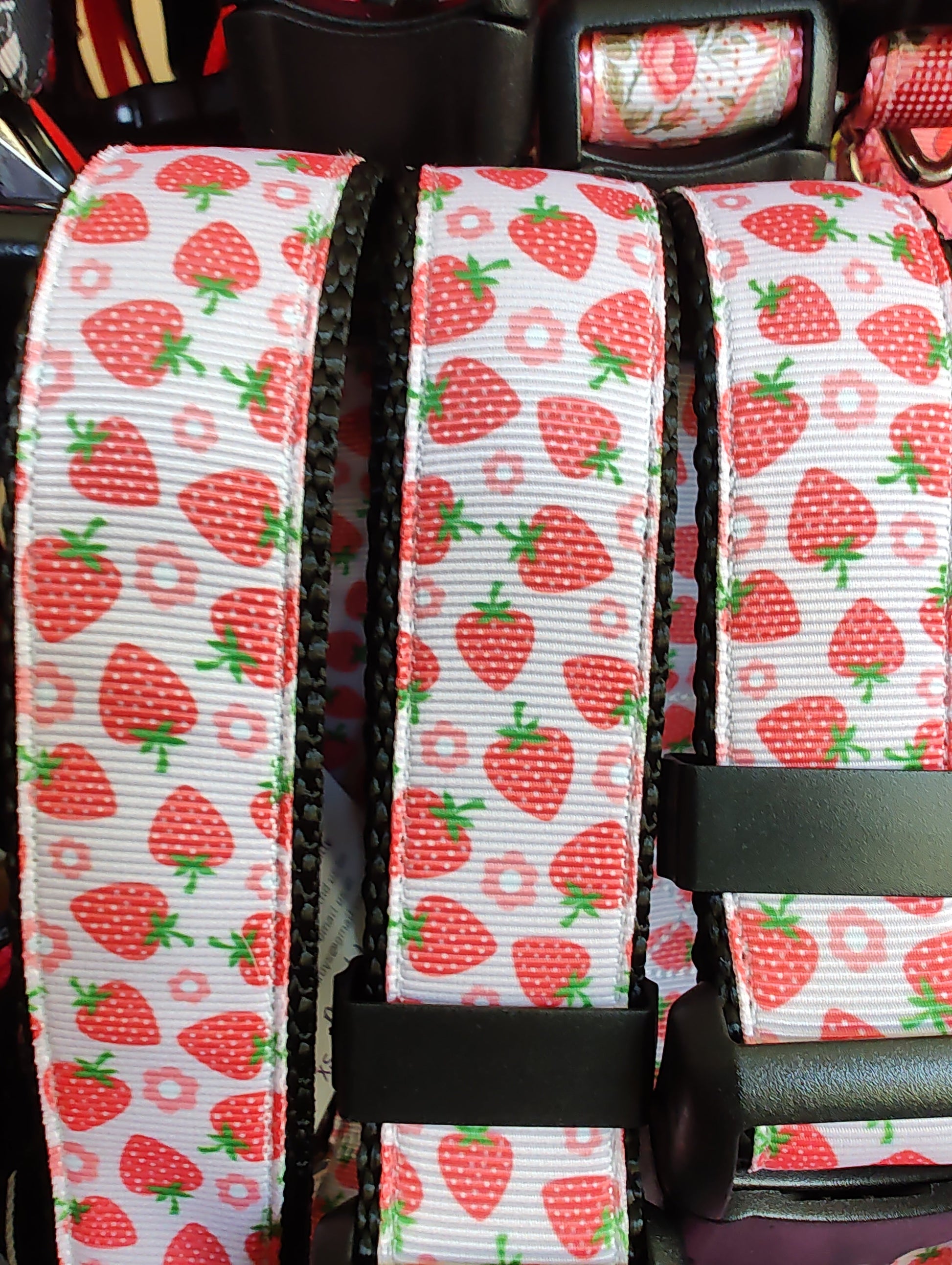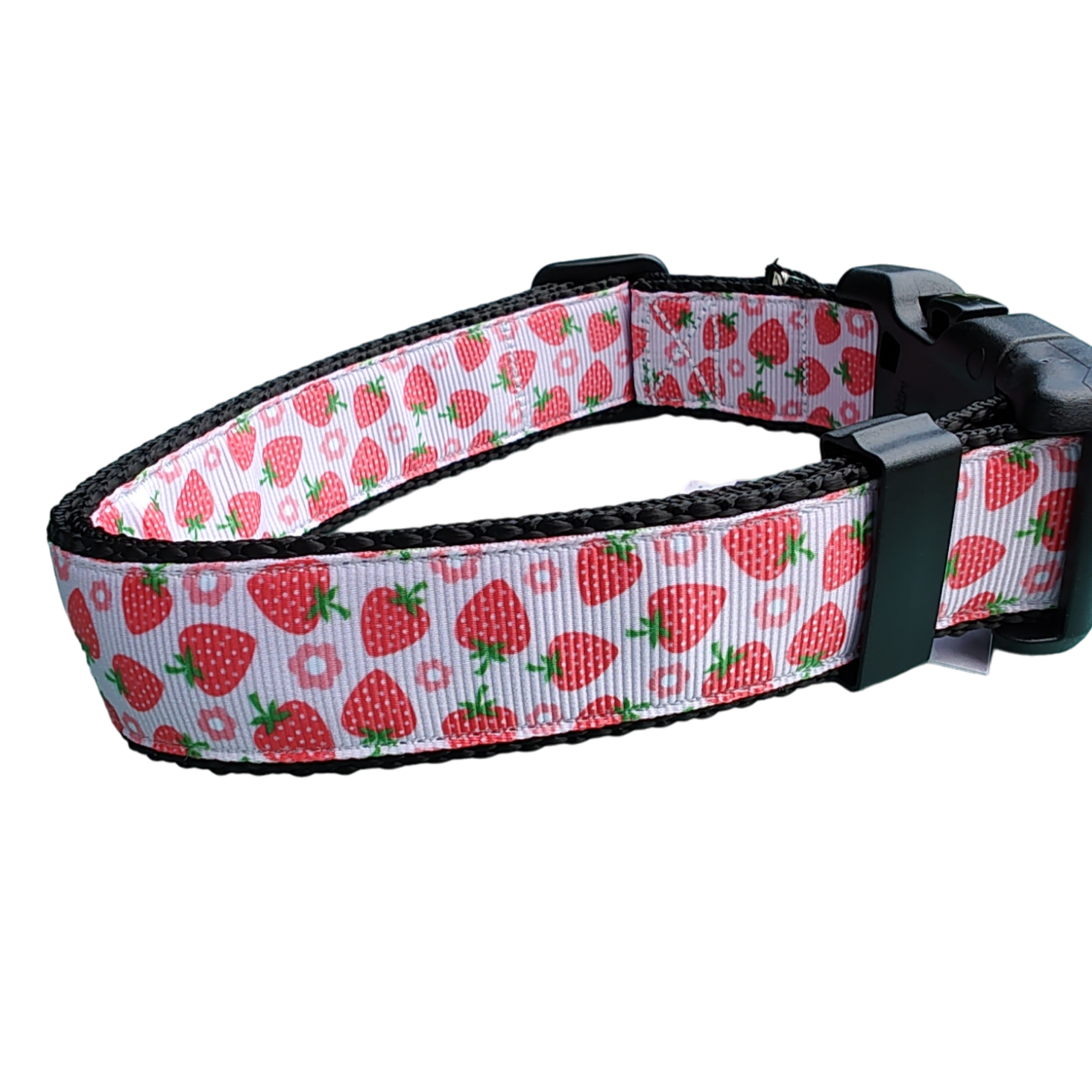Strawberry Flowers Black Nylon Dog Collar MD, LG, XL, Leash