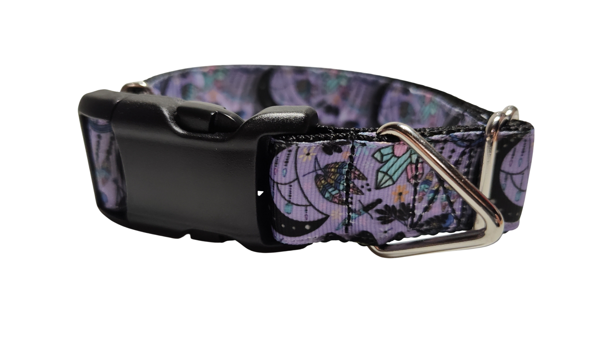 Witchy Crystals dog collar on nylon webbing