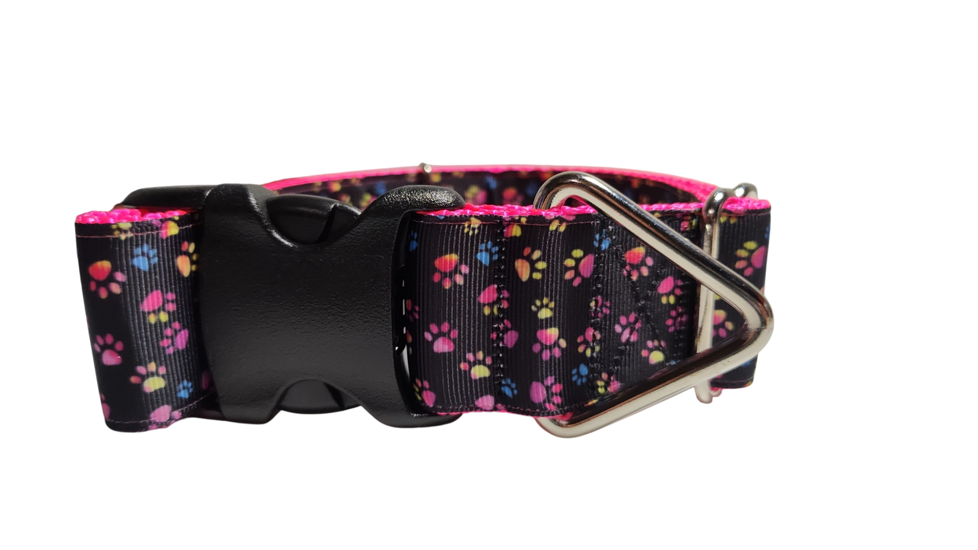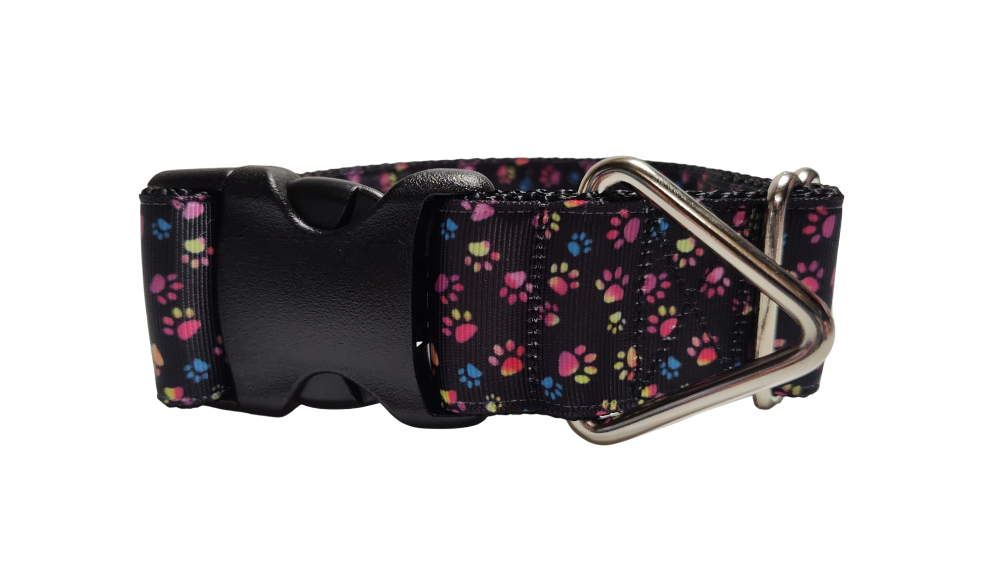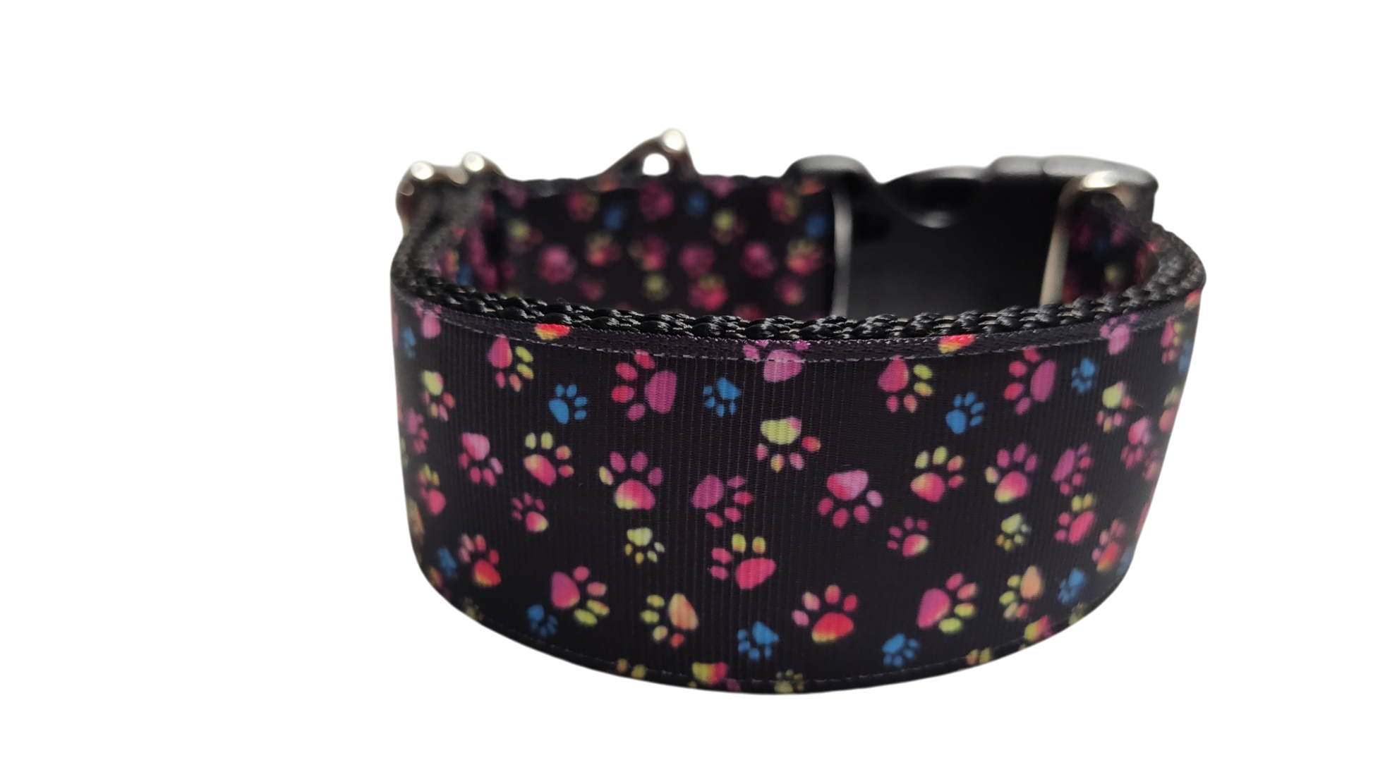 1.5" Wide Colorful Pawprints Nylon Dog Collar