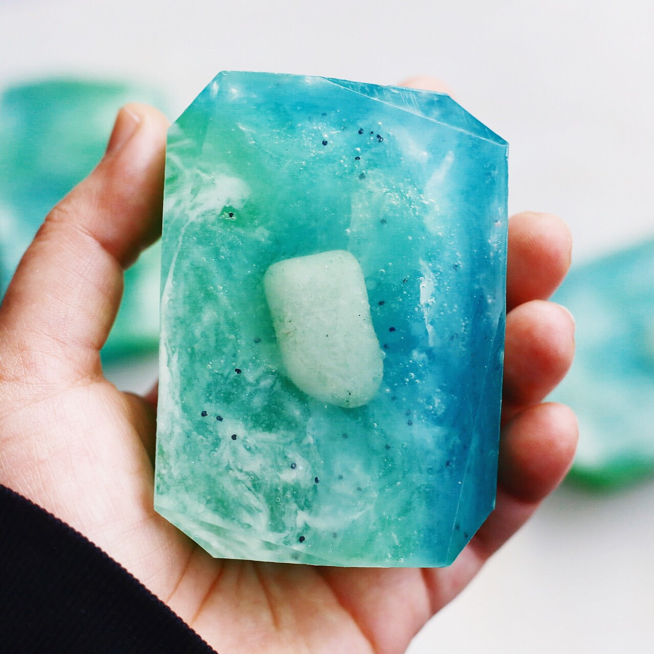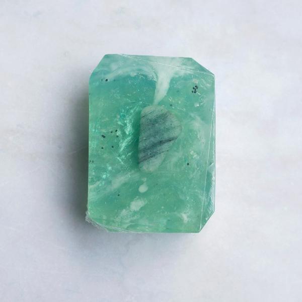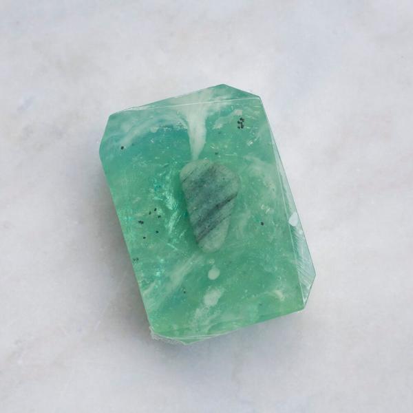 Embedded with a Green Aventurine tumbled crystal known as " Stone of Personal Truth". This bar comforts, protects the heart and can help attract love later on in life. It is one of the premier stones to attract luck, abundance and success. It’s recommended for working through unresolved issues.