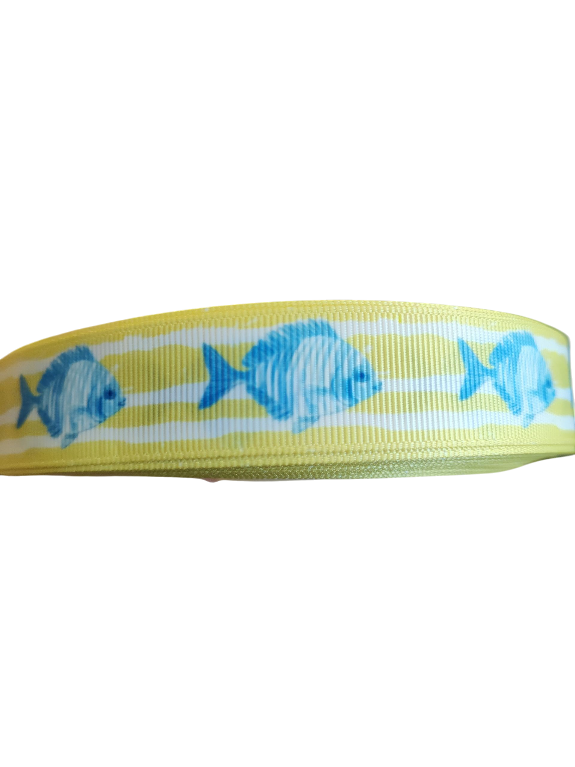 Fish On Yellow Stripes Nylon Dog Collar