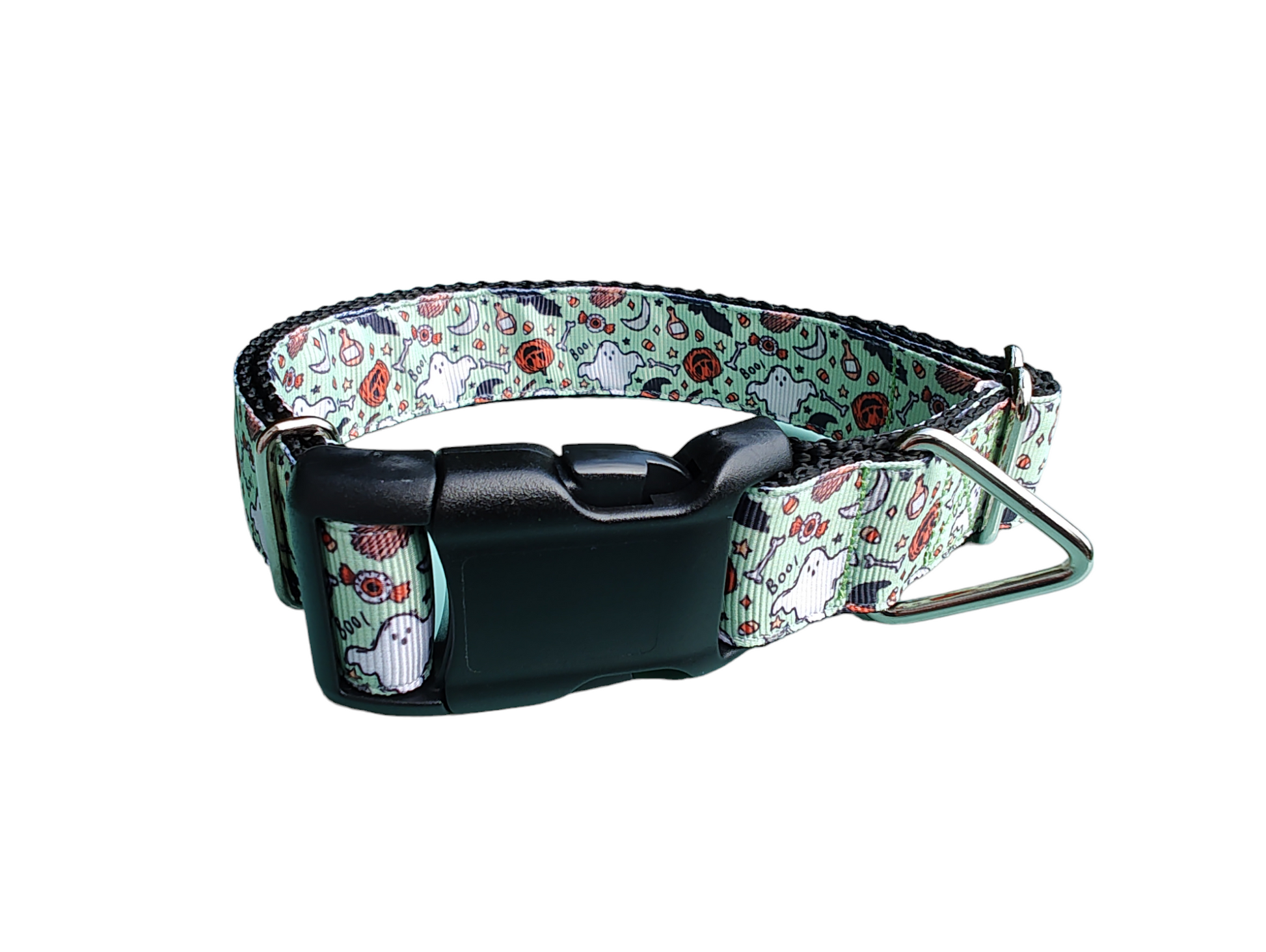ghosts, jack o' lanterns, candy, bones, BOO, moon, stars, witch