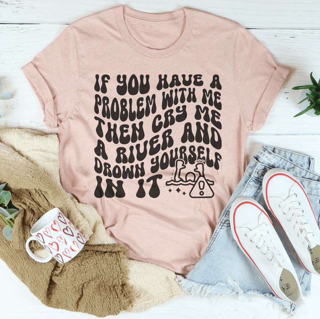Say it with sass! The "If You Have A Problem With Me Then Cry Me A River" T-shirt is for those who carry their confidence with a side of snark. Perfect for anyone who prefers honesty over subtlety.