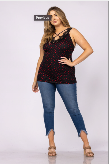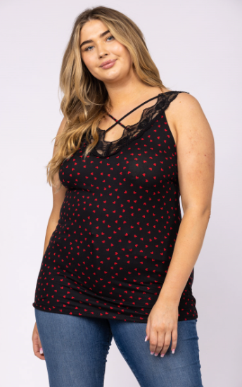 NOIR BLACK W/ RED HEART PRINTS LACE V NECK CRISS CROSS Tank