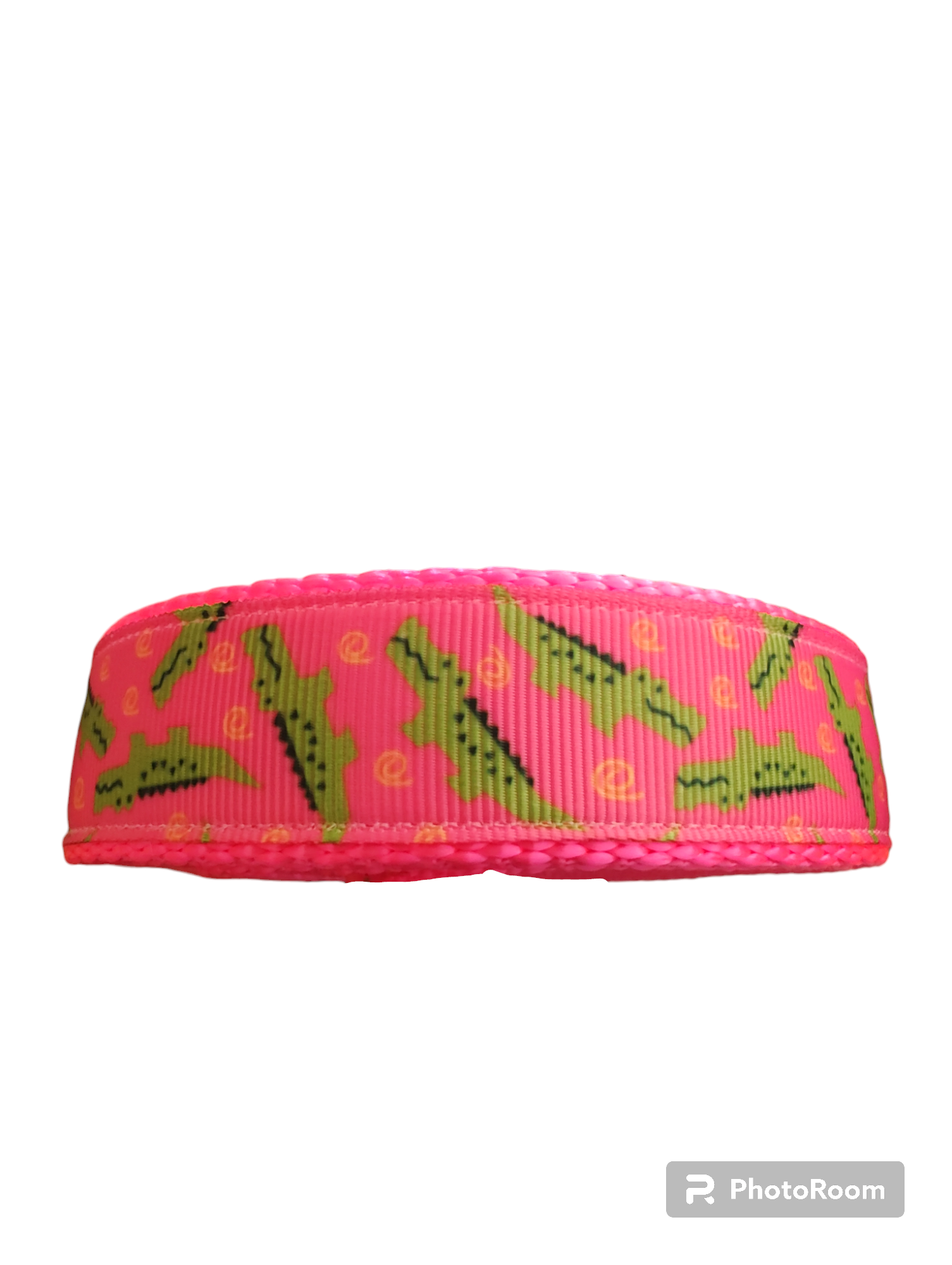 Pink Alligator Hot Pink Nylon Dog Collar MD, LG, XL, Leash